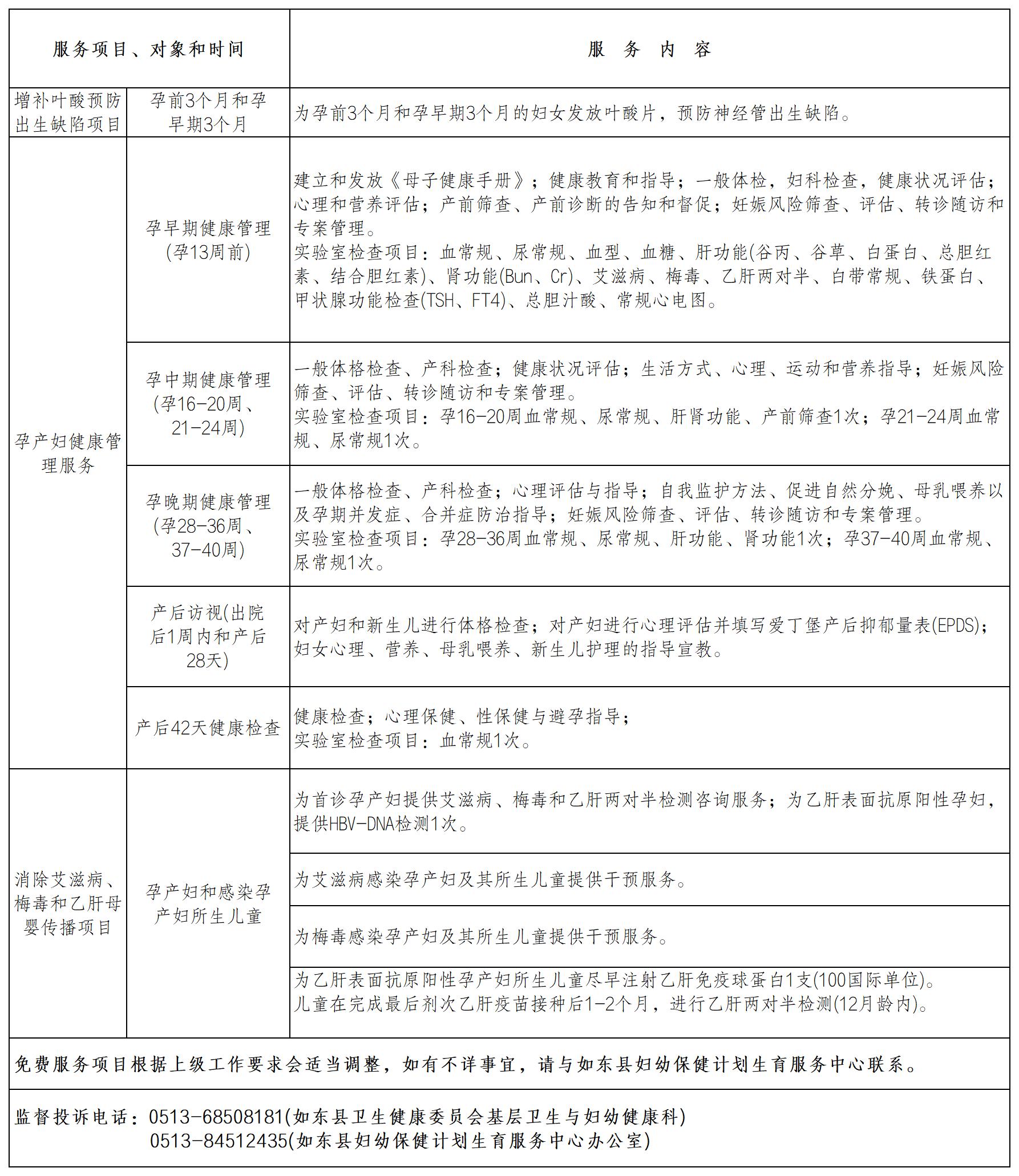 如东县妇幼公共卫生服务项目免费内容公示