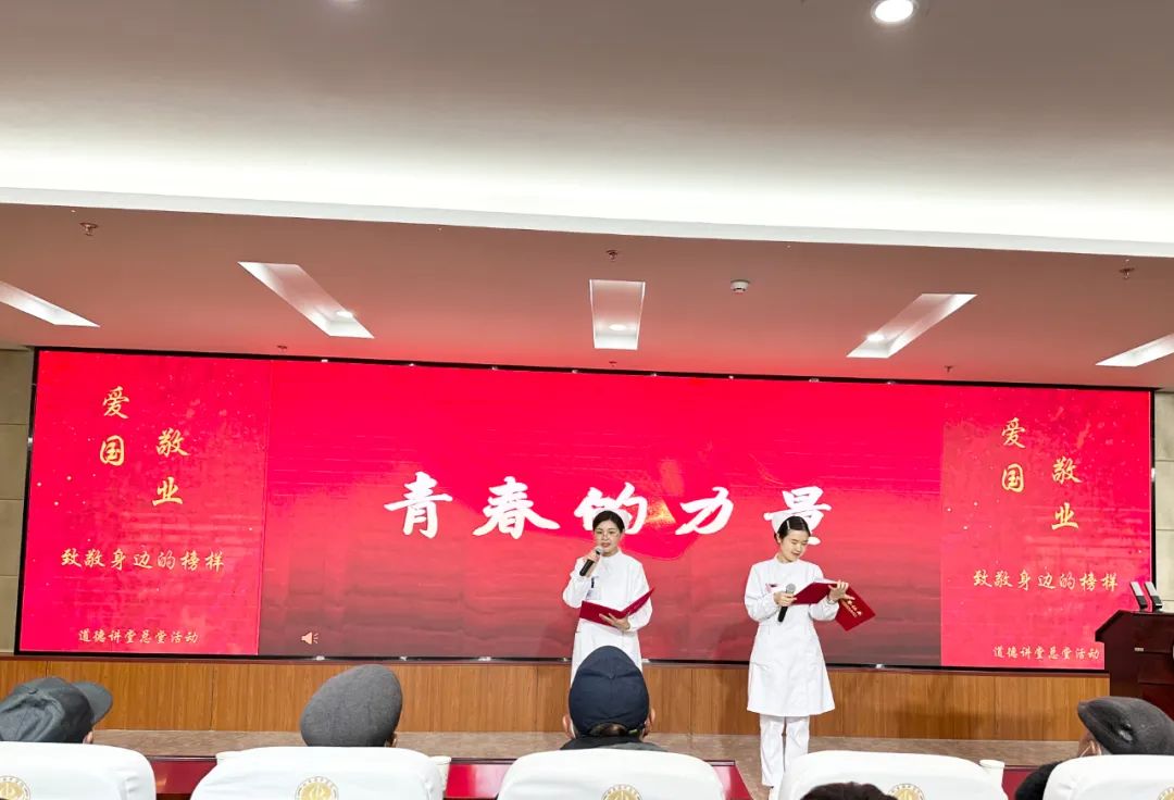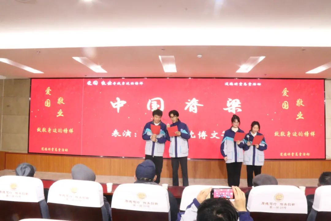 当代青年应当脚步丈量祖国大地,用眼睛发现中国精神,用耳朵倾听人民呼声,用内心感应时代脉搏。此次道德讲堂在《青春的名义》和《中国脊梁》的激情朗诵中,拉开了序幕。