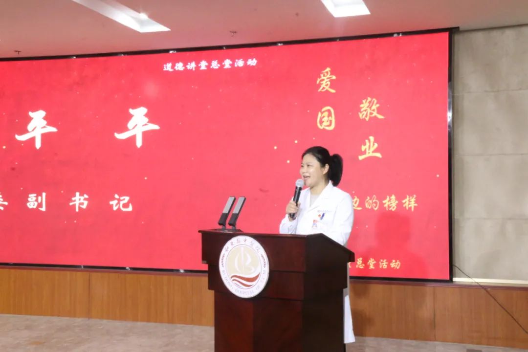 党委副书记徐平平作点评。她表示,“道德讲堂”仅是起点,全院干部职工要自觉遵循道德规范,大力弘扬以爱国主义为核心的民族精神和以改革创新为核心的时代精神,践行社会主义核心价值观,为服务民生、健康如东做出应有贡献。