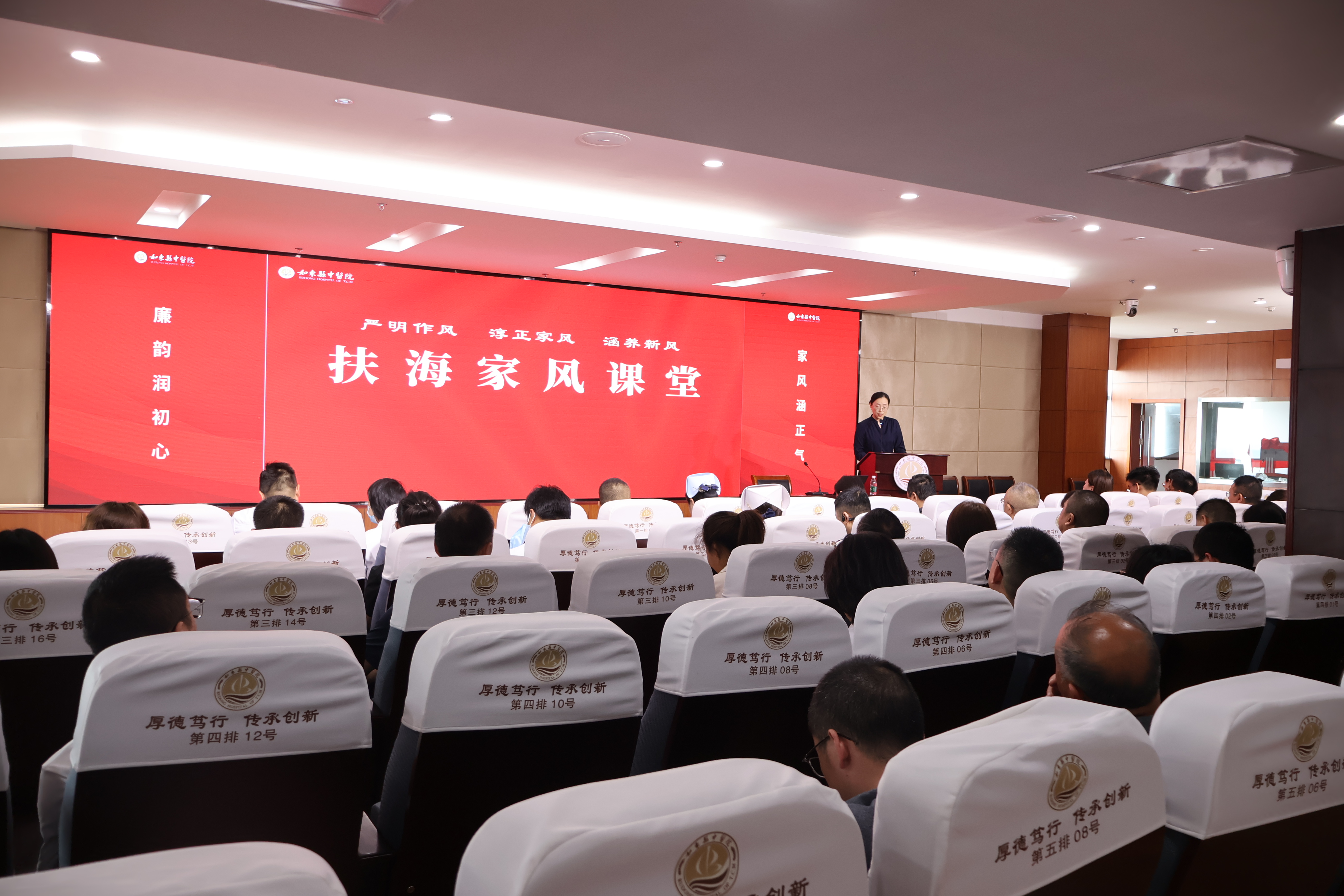 为持续巩固深化党纪学习教育成果,推进深入贯彻中央八项规定精神学习教育,如东县中医院于2025年5月29日下午举办“扶海家风课堂”活动,共沐清廉家风,共话廉洁初心。部分中层干部及家属代表、支部书记及家属参会。邀请派驻县卫生健康委员会纪检监察组组长张军上了一堂家风专题课,阐述了家风的概念、内涵与形成,同时对新时代党员干部如何建设好家风也进行了很好的辅导,希望大家有所受益。与会人员观看了专题警示教育片,中层干部代表、中层干部家属代表进行了交流发言。通过家风课堂,旨在敦促党员干部及家属能始终保持如履薄冰的高度警觉,校准思想之标,调整行为之舵,绷紧作风之弦,走好人生之路,守护美满之家。