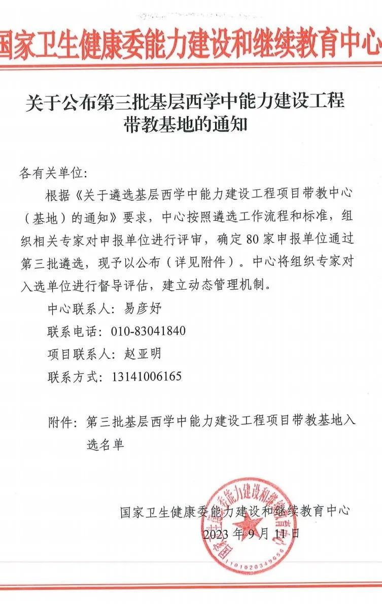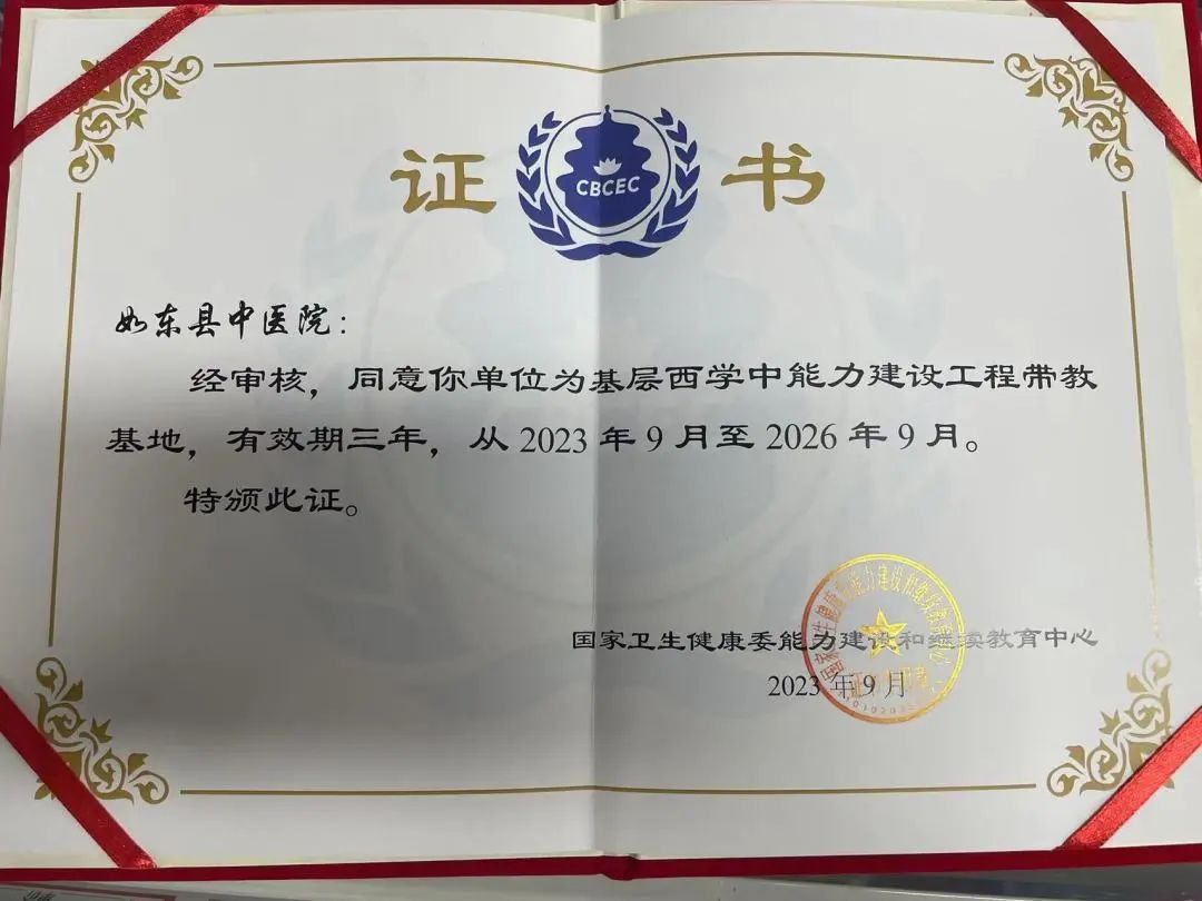 日前,国家卫生健康委能力建设与继续教育中心发布第三批基层西学中能力建设工程带教基地名单,如东县中医院名列其中,江苏省共10家单位入选,我院是南通地区唯一入围的县区级中医院。
