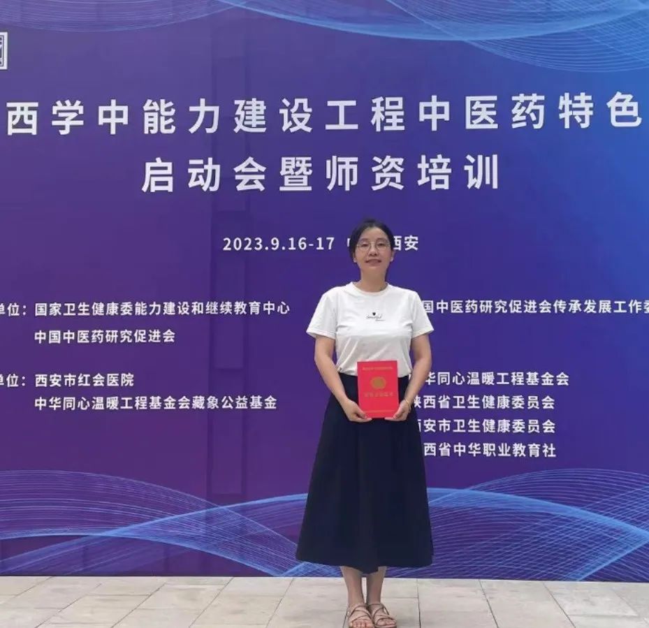 9月16-17日,基层西学中能力建设工程中医药特色技术启动会暨师资培训在陕西西安举行。国家中医药研究促进会党组书记高泉、国家卫健委继续教育与能力建设中心主任杨爱平、中华同心温暖工程基金会副理事长兼秘书长方乃纯、国医大师陕西省名中医高忠义、陕西中医药大学原副校长王瑞辉、国家非物质文化遗产传统医药项目摸骨正脊术第五代传承人郭华等领导与嘉宾出席活动仪式,我院院长助理、医务科科长王金双领取基地证书,骨伤科蔡雨辰、针灸推拿科王丽君分别参加了摸骨正脊非遗技术、电磁针贴技术两个项目的培训工作,并取得资质证书。