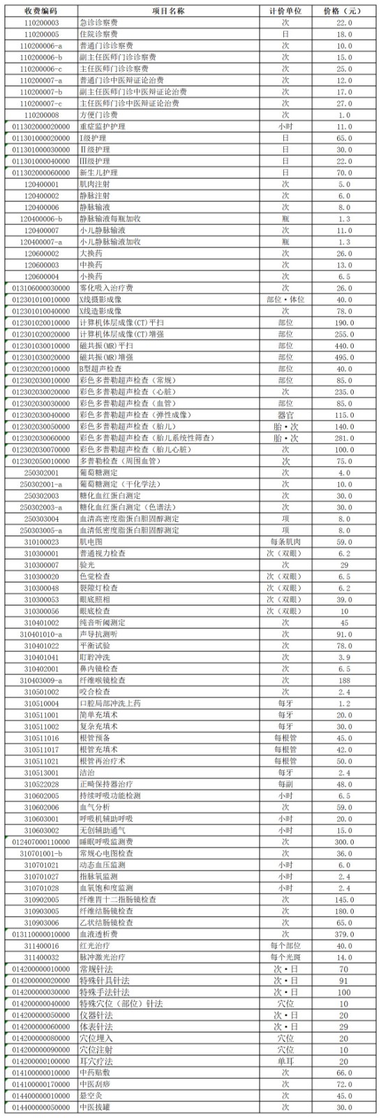 如东县中医院价格公示